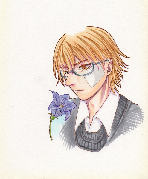 「ナナシノ楽園」の登場人物・衣澄貴久イメージイラスト。誕生日1週間前なので。イメージモチーフは桔梗。親友?の高宮とはどうなるのでしょうか…?