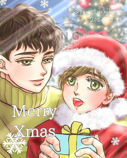 うちのコ、斉藤和晃さんと、滝本裕貴くんの2024年のクリスマスイラストです🙂💕✨