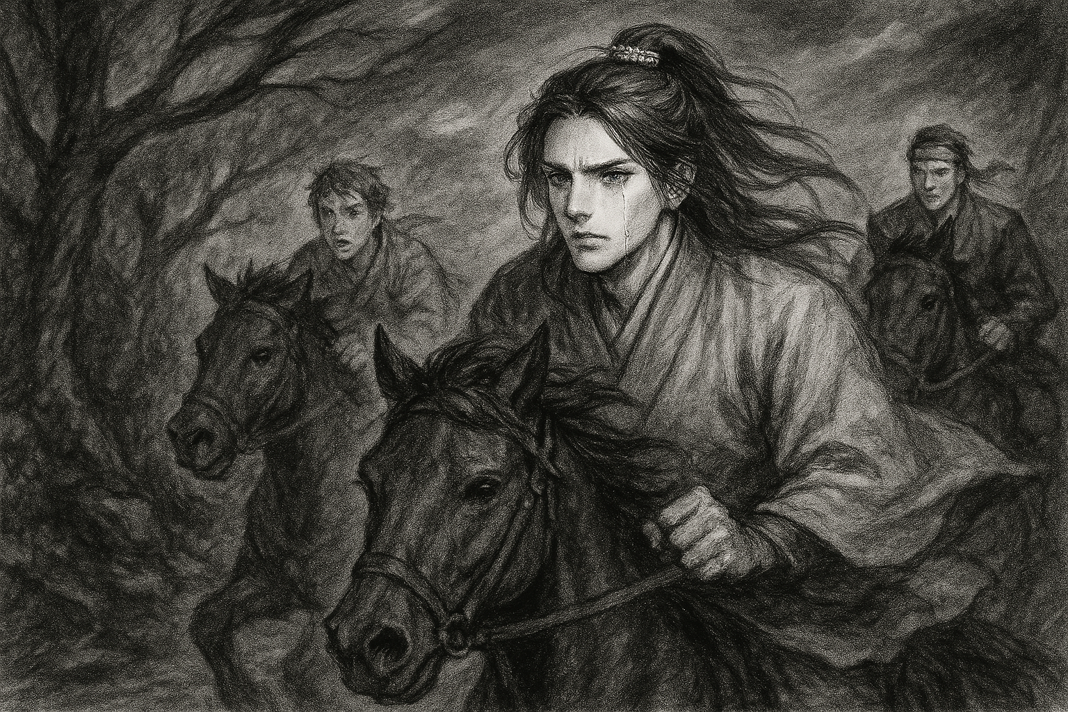 男の結い髪に刺した銀の歩揺が、鞍上の動きに合わせてせわしなく揺れ、そこに映る月明かりが砕けた氷のように煌めいた。
