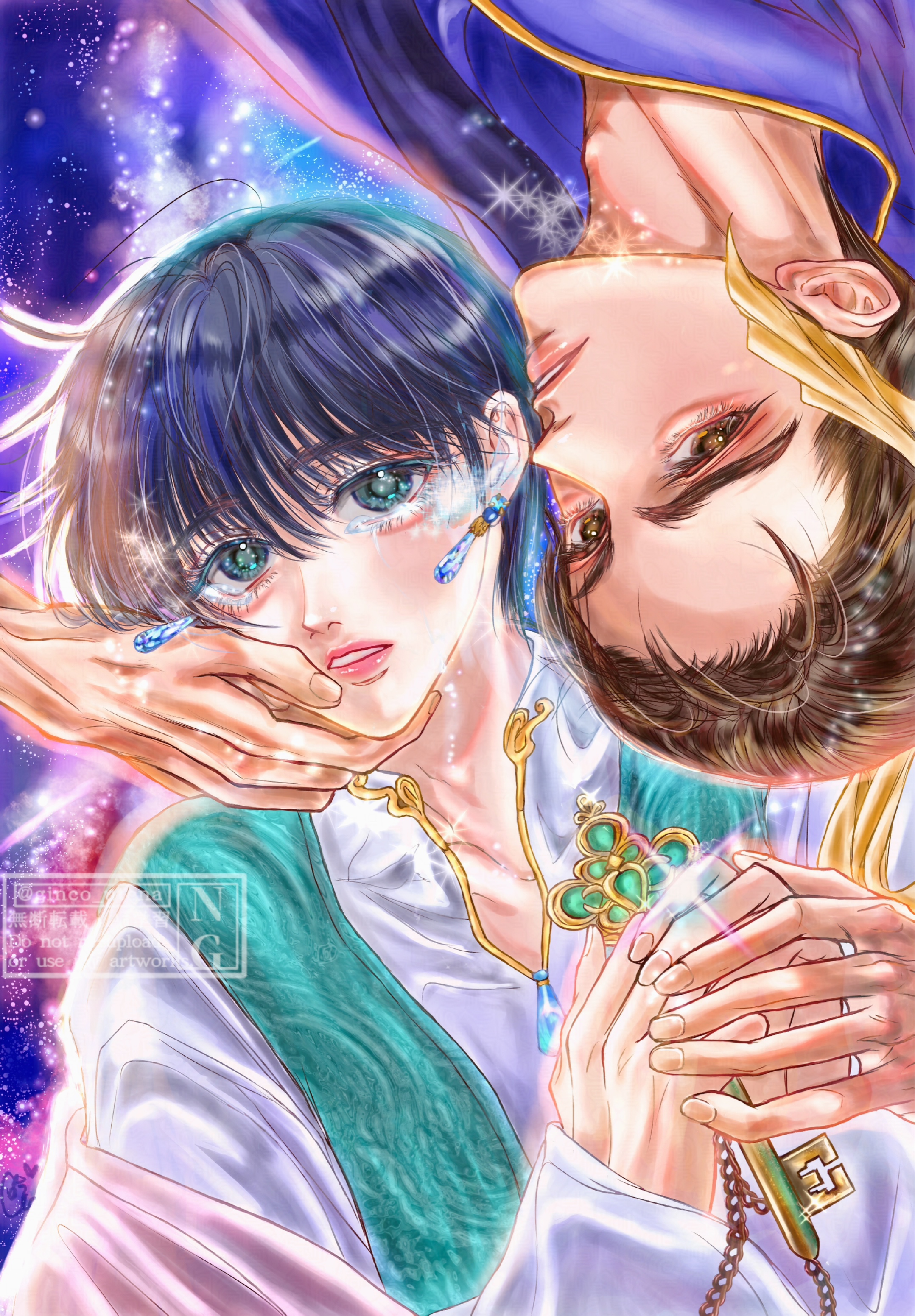 『満天の七夕の下』(しちせきのもと)の表紙絵です。 実直農耕無自覚牛飼い×潤い溢れる幼顔天人💫