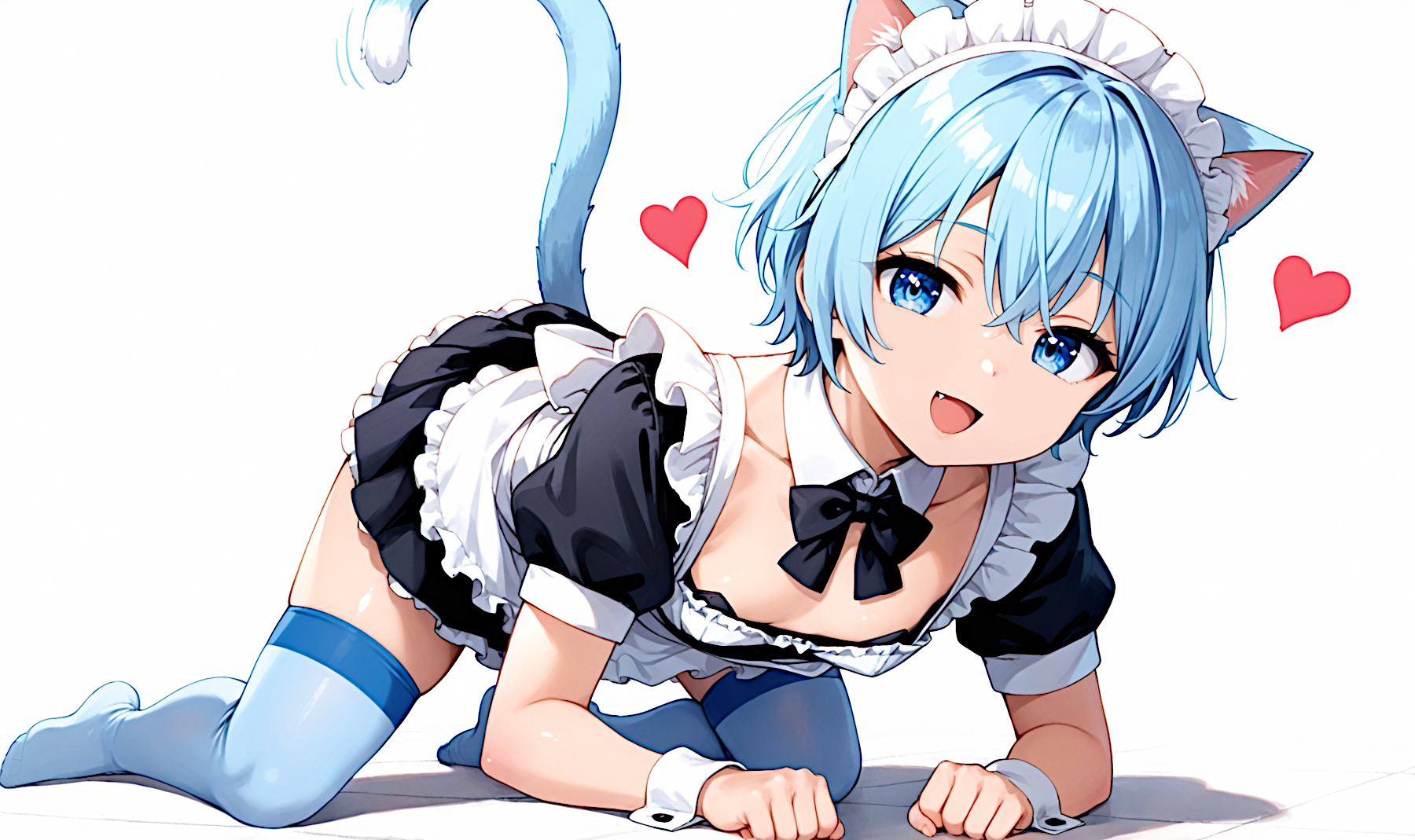 【AI生成イラスト】拙作『ショタっ娘のいる生活』より、猫メイドなショタっ娘ミオちゃん