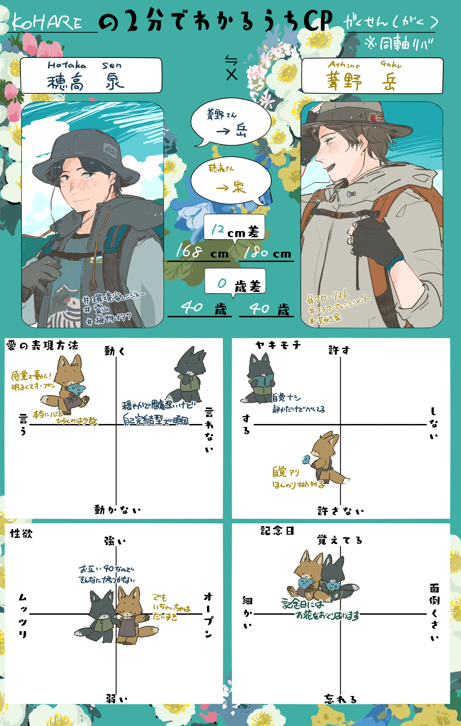 パークレンジャーとフローリストという、手つかずの自然と手を入れた自然、お互い芯は同じだけれど、全く別のフィールドで仕事をする二人……にロマンを感じてしまい、かれこれ一年くらい創作してます。