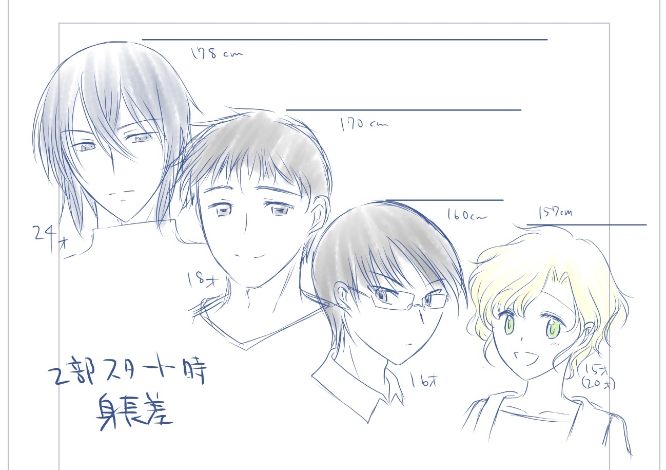 5巻以降の現実世界側の4人の見た目と身長差です。