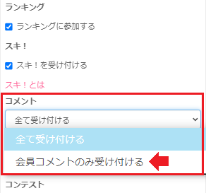 会員のみのコメントを受付ける場合は「会員コメントのみ受け付ける」をご選択ください。
