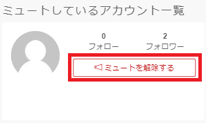 ①「ミュートしているアカウント一覧」ページより、解除したいアカウントの「ミュートを解除する」ボタンを押す