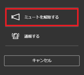 「ミュートを解除する」を選択するとミュート解除設定完了です。