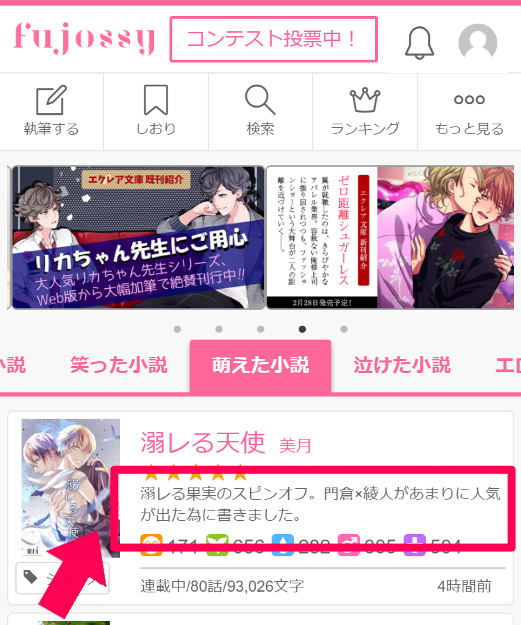 作品の「紹介文」を1,000文字以内で自由に入力することができます。