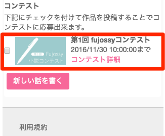新規作品でコンテストに参加する方法と、既存の作品でコンテストに参加する方法があります。