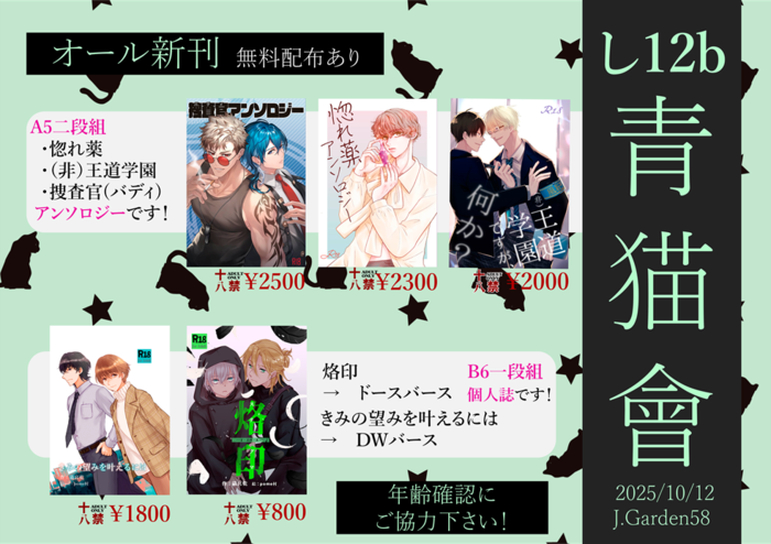 【し12b】J.GARDEN58(10/12)にて頒布する個人誌/アンソロ+通販のお知らせ