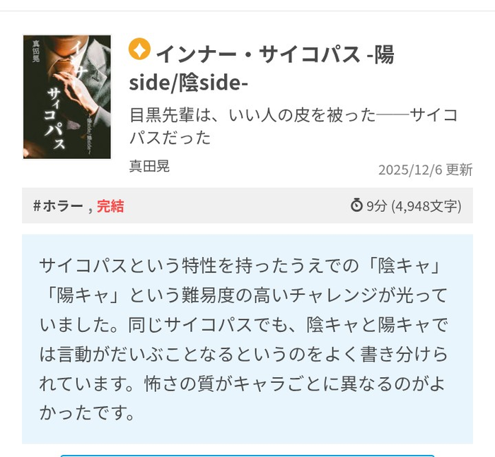 ジャンルがホラーなのでどうかと思いましたが…